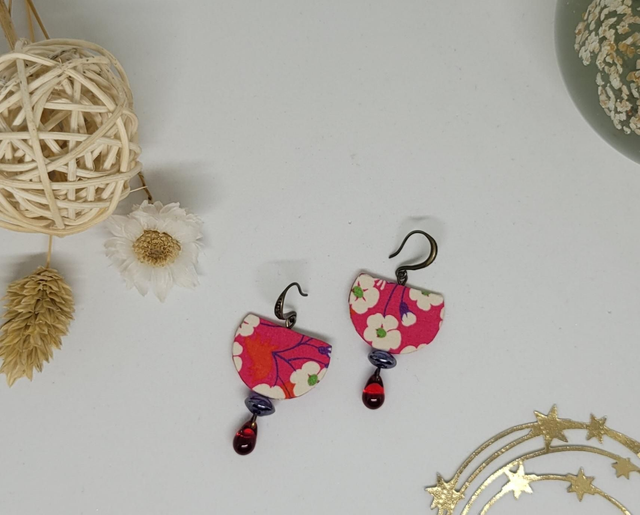 Boucles dorées, Tissu Florale rouge Collection "Odile Bailloeul"